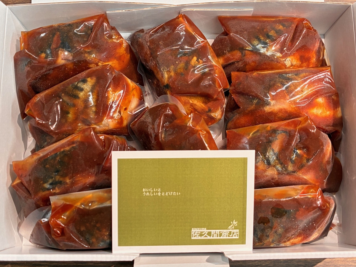 原材料:さば(ノルウェー産)、砂糖、味噌(大豆を含む)米/酒精、カラメル色素